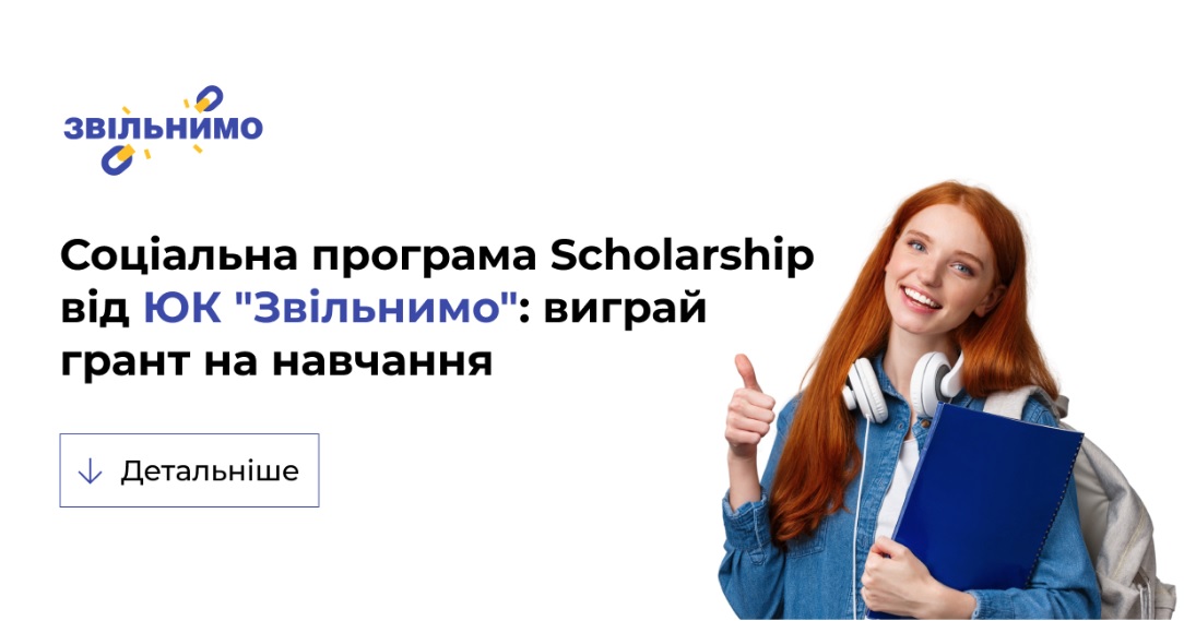 Юридична компанія «Звільнимо» запрошує активну та талановиту молодь взяти участь у грантовій програмі Scholarship. Ми переконані, що підтримка освіти — це інвестиція у майбутнє країни, тому прагнемо допомогти студентам подолати фінансові виклики та реалізувати свій інтелектуальний потенціал. Умови участі: Обрати…