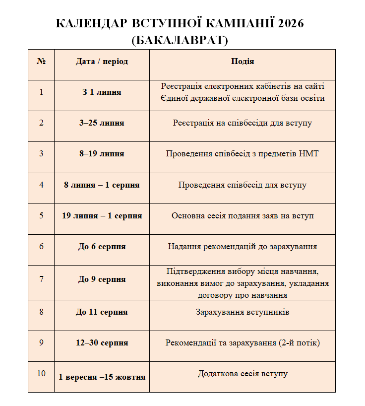 Календар НМТ 2026 Графік ЄВІ та ЄФВВ 2026 Календар вступної кампанії на магістратуру 2025 Переглянути